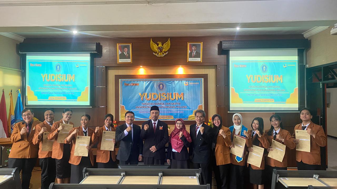 Fakultas Bahasa dan Sastra (FBS) Universitas PGRI Kanjuruhan Malang menyelenggarakan Yudisium Semester Ganjil Tahun Akademik 2025–2026 pada Senin, 23 Februari 2026, bertempat di Ruang Abdul Radjab. Kegiatan ini diikuti oleh 33 mahasiswa yang berasal dari tiga program studi, yaitu Program Studi Sastra Inggris, Program Studi Pendidikan Bahasa Inggris, dan Program Studi Pendidikan Bahasa dan Sastra Indonesia.